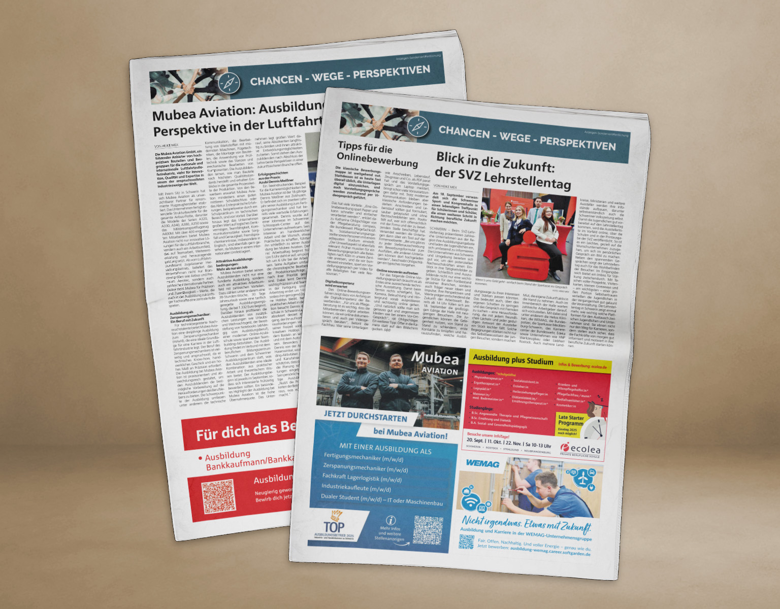 Das Sonderthema bietet Ihnen die ideale Plattform, um Ihre Ausbildungsplätze, dualen Studiengänge oder Praktikumsmöglichkeiten einem interessierten Publikum effektiv und aufmerksamkeitsstark vorzustellen.